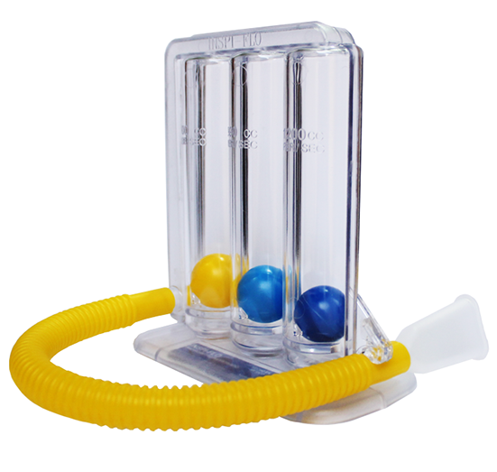 Este método consiste en utilizar un incentivo visual (una, dos o tres bolas que se elevan cuando el paciente inspira) que condiciona el logro de un esfuerzo inspiratorio máximo. También recibe el nombre de ESPIRÓMETRO DE INCENTIVO.